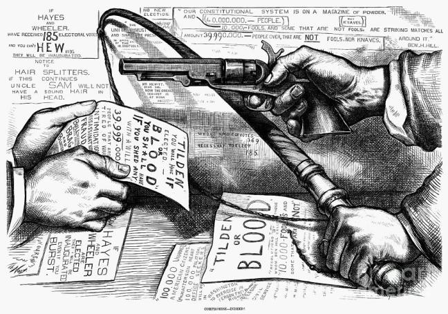 Much of the blame appears to be laid squarely upon the President of the United States of America. He encouraged the crowd to come to DC for a Stop The Steal protest on the day that Congress would be meeting to accept the votes of the Electoral College. This routine exercise in democracy is rarely marked by controversy. Indeed, some famous losers of the Presidential contest, like Al Gore, have joked their way through declaring their opponent the winner. The last time there was any serious contention was in 1876 when some Southern states sent two slates of Electoral College Electors to Congress. This resulted in the “Corrupt Bargain” that made Hayes President and ended the protections for Freedmen under Reconstruction.