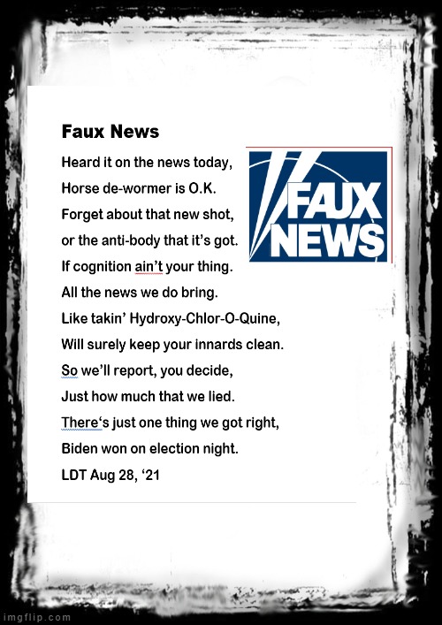 Faux News Posted bythillldAugust 28, 2021October 3, 2021Posted inUncategorizedTags:Fox News Book Link: Main Menu: http://www.azrockdodger.com Book Link: https://azrockdodger.com/2021/10/03/the-rhythm-of-my-soul/ Return of Kid Curry Click to share on X (Opens in new window) X Click to share on Facebook (Opens in new window) Facebook Like Loading... Related Published by thillld Retired. History Buff. Amateur Poet View more posts