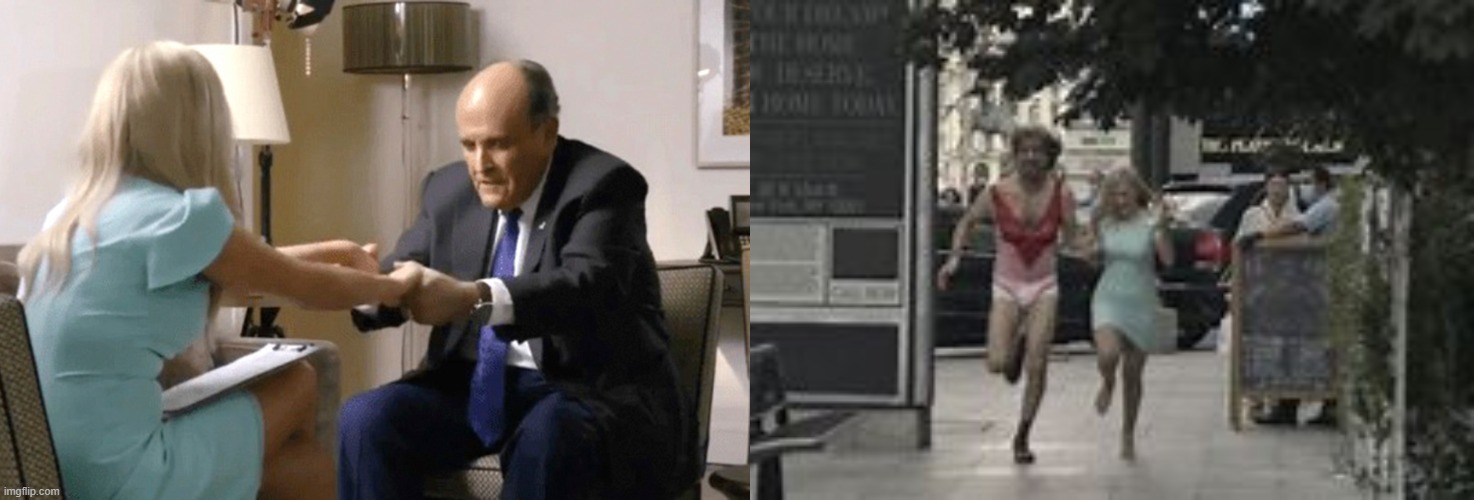 Rusy Giuliani was hilariously pranked by actress Maria Valcheva Bakalova in Sacha Baron Cohen’s film, “Borat Subsequent Moviefilm. Posing as a foreign journalist, she got him to sit for an interview in a hotel room. After the interview, she asked him if he wanted to step into the bedroom for a drink. The guiliable Guiliani agreed. As she was helping him with his microphone on the bed, he appeared to start removing his pants. Here’s what Rudy said happened next: