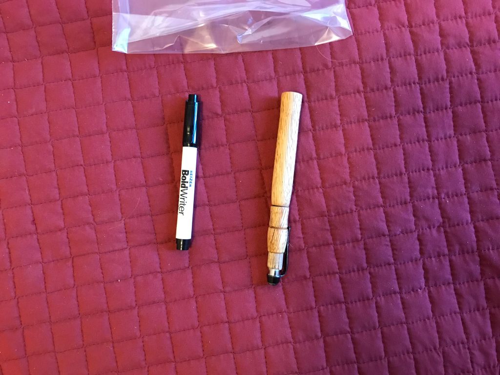 Note to self: The end opposite the felt tip is thicker than the tip. Remove by pushing the tip through the tube. Then install the new pen tip first in the tube. The cap is permanently glued to the top part.
