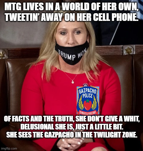 From CNN: Marjorie taylor Greene accuses Nancy Pelosi of sending the Gazpacho Police to enforce House Rules.