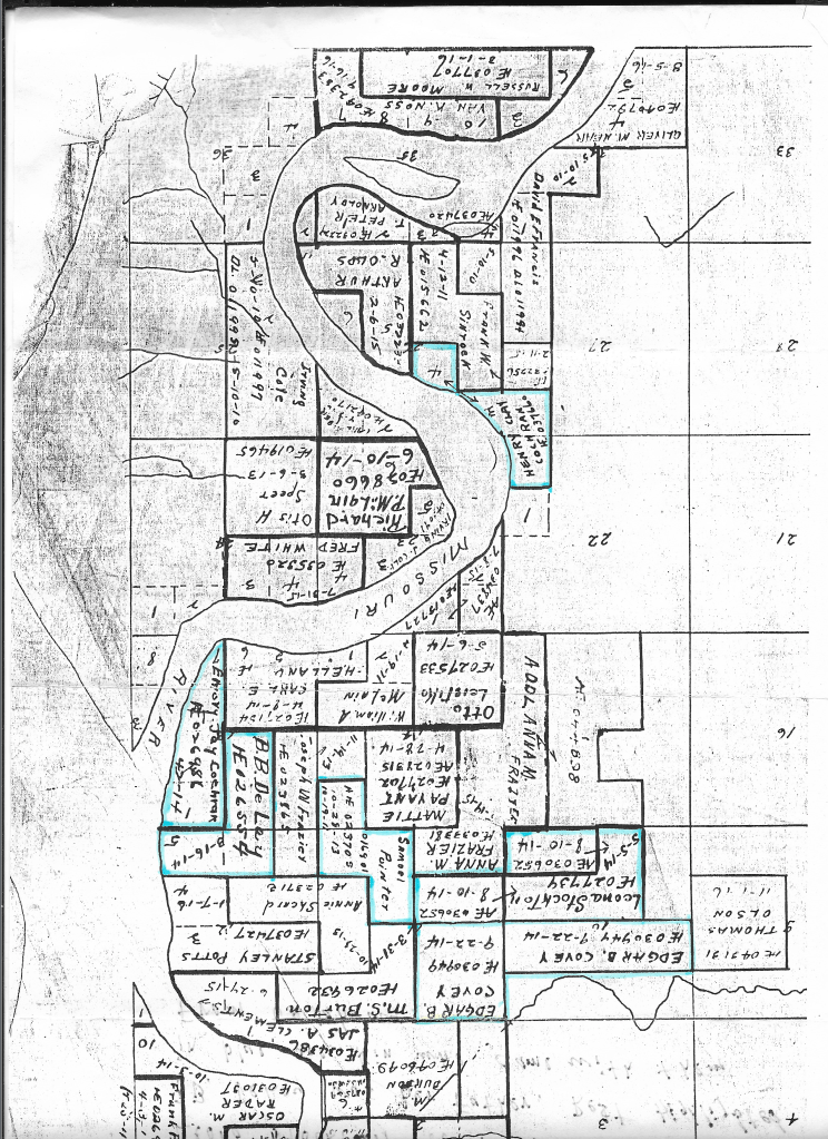 B.B DeLay and his extended family homesteaded on the Missouri River in the Lismas/Ninth Point area. Fort Peck Lake now covers the original homesteads. The DeLays, Cochrans, Leona (DeLay) Stockton, Coveys and Pointers were all related. They came from Oklahoma in 1912-1914. The DeLays were originally from Appanoose County, Iowa. The DeLay name is French and was originally spelled DeLaye. Claude DeLay Stockton’s nickname is usually spelled De.