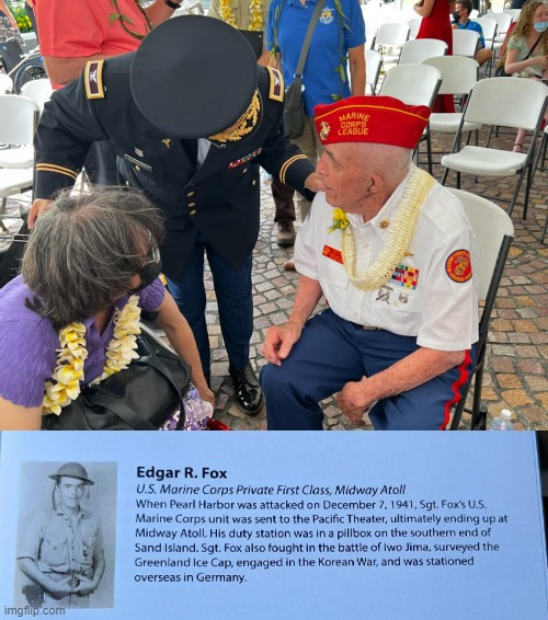 Fox served as a Marine on Midway Island during the battle. He helped defend the island from the initial attack by Japanese carrier aircraft. He very likely witnessed the 6 Avengers of Torpedo Squadron 8 as they took off along with Army bombers for the opening attack on the Japanese fleet.