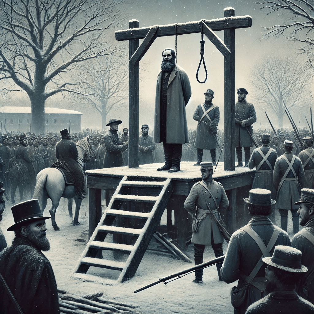 Brown had, indeed, captured the arsenal at Harper’s Ferry in October of 1859. The raid was a poorly planned disaster. Brown recruited only 2 local slaves for his rebellion. Eleven of his men, including 2 of his sons, were killed. Brown and 6 others were captured. As the song continued,