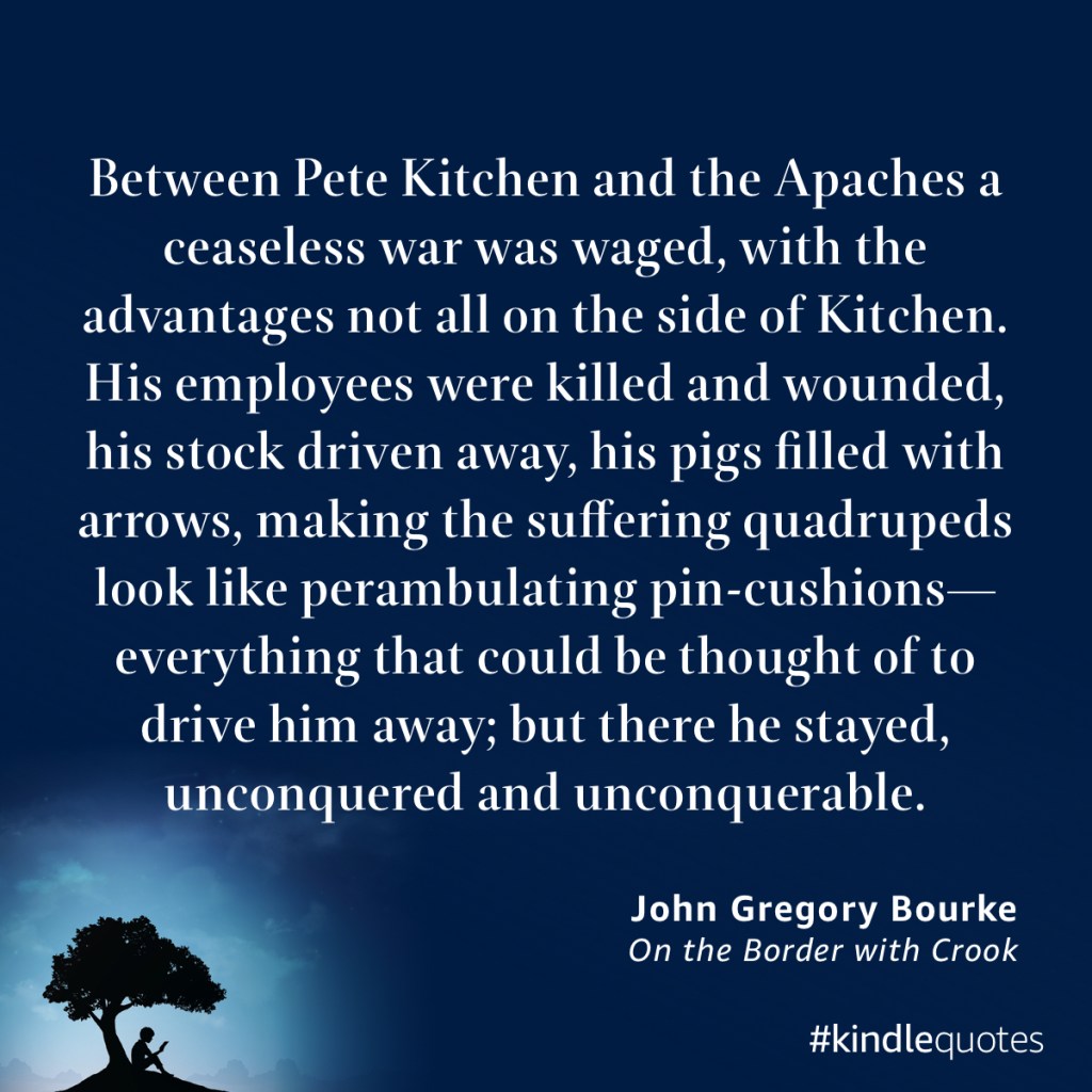 Kitchen was known throughout the territory for his hams. Pork was the one product that the Apache did not covet. (They hated snakes and pigs eat snakes.) Peace, and the coming of the railroad ended the meat and produce monopoly Kitchen had enjoyed. He sold out in 1883 and moved to Tucson. Bad loans and gambling losses caused his fortune to wither. He died nearly broke in 1895. He was buried in Tucson. His epitaph could easily have been, “Muy valiente! Muy bueno con rifle.”