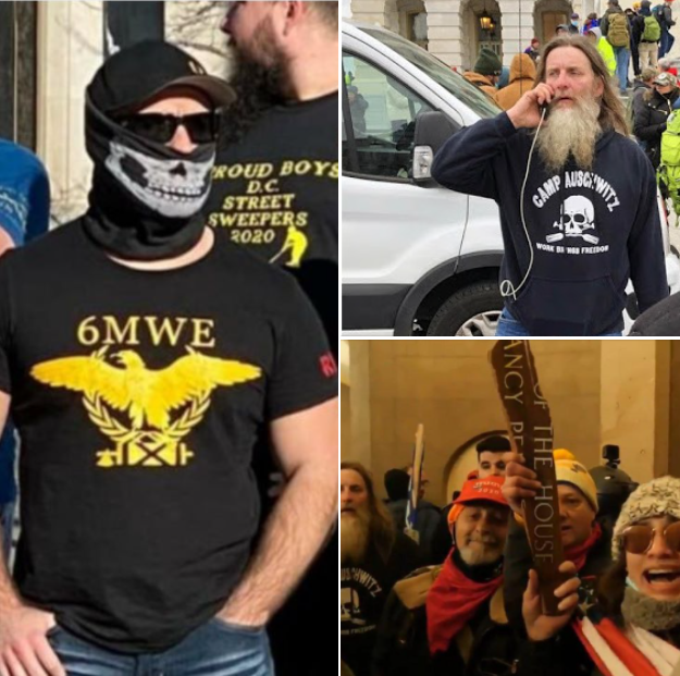 Many of the participants were members of groups with unsavory reputations. Some appeared to be members of private militia groups. The Leader of the Proud Boys, Henry “Enrique” Tarrio, was arrested for an earlier offense on his way into town. No doubt there were other groups like the Three Percenters and Boogaloos, all of them listed as hate groups by the Southern Poverty Law Center. Participants were photographed wearing riot gear or T-shirts with incendiary phrases on them. Examples: “Camp Auschwitz” and “6MWE” (Six Million Wasn’t Enough in reference to the holocaust).