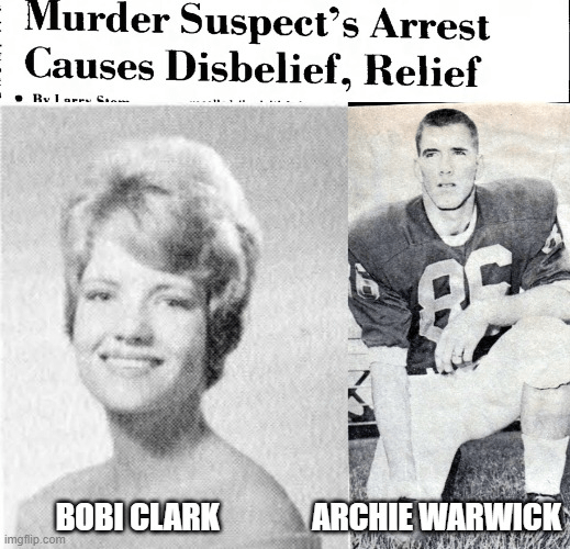 Five years after the death of Roberta Clark, there was a break in the case. Headlines across Montana screamed, “Ex-MSU Gridster Charged in Clark Murder”. The accused was Orville “Archie” Warwick. Then living in Seattle, Warwick voluntarily returned to Bozeman to face charges. Bail was set at $30,000[11] There was a mixture of shock and relief across the state. Bobbi Clark had been a beloved teacher in Kalispell and Warwick was a sports legend at Havre High and MSC. New informants had obviously come forward in the case.